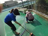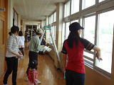 クラスごとに、一生懸命そうじをしました。・・・・水がつめたいやら・・・気持ちいいやら・・・、お陰で大変きれいになりました。6年生のみなさん、ありがとうございました。