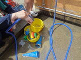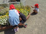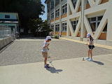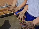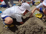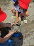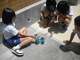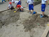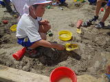 3時間目、砂場で活動していました。楽しくて仕方ない様子・・・。暑くなってきたので、手を洗うのも道具を片づけるのも気持ちよさそうでした。また、かたつむりを見つけた児童もいて、大事そうにみせてくれました。