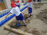 1年生は、土や砂となかよくなって、それぞれの児童が、いろんなことを考え、自分の思いを大切にした活動をしています。
