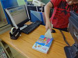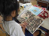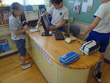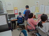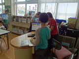 お昼休みの活動の様子です。全校児童の本の貸し出し、返却を一手に任され、活動しています。パソコンの扱いも、すでに習得しています。