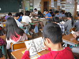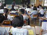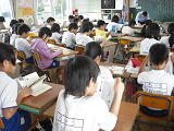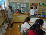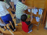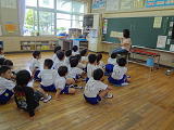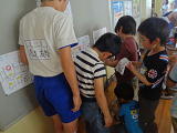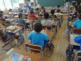 校舎内、校庭を案内した後、教室に戻り、2年生が考えた「学校に関するクイズ」を出しました。「運動場のタイヤの数は何個でしょう。」「登り棒の数はいくつでしょう。」・・・1年生はたくさん学校のことを知ることができました。2年生はお兄さんお姉さんとしてしっかり頑張りました。2学期にも生活科で2年生が中心になって1年生といっしょに遊ぶ計画があります。みんな楽しみにしています。