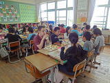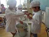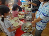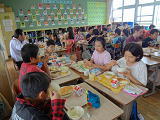 台拭き係の児童も活躍しています。片づけも6年生のサポートを受けながら上手にできるようになっています。6年生のみなさん、いつもありがとうございます。