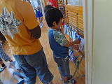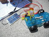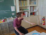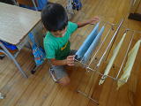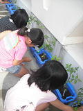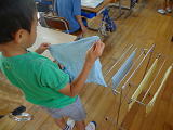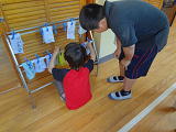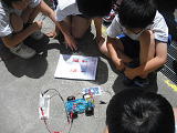 太陽の光を集めて、ソーラーカーを走らせる学習を行っていました。「走る!プロペラが回る!・・・ふしぎだね・・・、すごーい!」歓声がいろんな所から聞こえてきました。将来、科学者になる人がいるのかも・・・しれません。