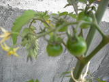 2年生が大切に育てているトマトに実がつき始めました。支柱も立てました。・・昼休み時間に観察ノートにその様子を記す2年生発見・・・。嬉しくてたまない様子・・・、じっとみて、友達と何かささやきながら記録していました。