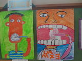 二年生の素晴らしい絵の数々・・・今、東側の階段の掲示板でみることができます。いろんなタイトルがついていて、なるほどと思わされます。タイトルをみながら、じっくりみてくださいね!