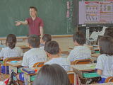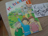 今日は、ALTのアレックス先生との楽しい英語活動がありました。先生は、アメリカ、オハイオ州からこられました。子供たちは、教科書と自作のネームプレートを机において、「ハロー、ミスターアレックス!」・・・・「ハロー エブリィワン」でスタート!