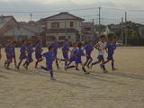 サッカー少年団の夕方の練習の様子!学校生活とは違う表情と礼儀正しさが印象的でした。どの子も必死に打ち込み、ボールを追いかけていました。