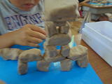 ねんどを高く・・・たかーく、つみあげて、お城を作ったり・・・ビルを建てたりしていました。