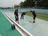 職員がみんな集まり、プールのそうじをしました。プールの中には、葉っぱやアメンボ・・・、みんなで力を合わせて、だんだん、きれいになっていきました。残りは6年生に引き継ぎます。6年生のみなさん、最後の仕上げ、宜しくおねがいします。