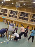 この競技は、いわば、みんなが初めての挑戦!はじめは、競技の要領を得ず、ぎこちなかったけれど・・・・メンバー同士が交わり、言葉を交わし、励まし合い、作戦を練り・・・、練習が進むにつれ、あれよあれよという間に、上達・・・・!クラスという輪の結束力がぐんぐんと強まっていきました。