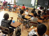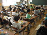 1時間目の授業が終わって、2年生の教室の横を通ったら、子供たちは、2時間目の授業の準備をして過ごしていました。