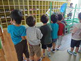 本を読み終えたら「ありがとう」と心でいって、そっと、もとの所にそろえて・・・戻しておく・・・そうしたら大切にしてもらった本も喜ぶでしょうね。倒れている本があったら、そっと起こしておげましょう。「ありがとう」の声がきこえてくるはず・・・