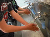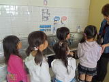 本校では、手洗い場に石鹸をおき、手洗いの手順を書いた写真をはっています。特にトイレの後、食事の前は大切です。また外から帰った時や遊んで帰った後も大事・・。つい忘れがちです。