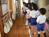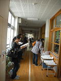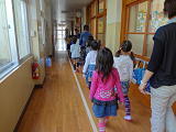 廊下で静かにまっている2年生の姿は、1年生のころに比べて、おにいさん、おねえさんになった様子がうかがえます。新1年生のお手本になることでしょう。