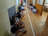 そうじの始まりは、チャイムの合図でその場で黙想・・・。
