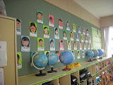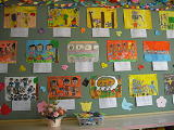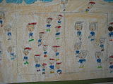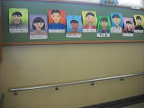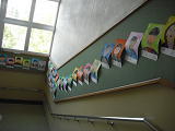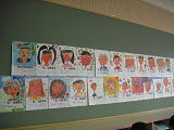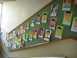 6年生の教室に向かう階段の壁には、今、6年生の自画像が掲示してあります。登校班の班長さん、少年団の6年生、金管バンドの6年生、給食当番の6年生・・・・どこかにいます。探してみると楽しいでしょうね?