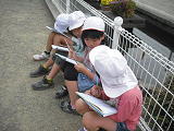理科の学習で、学校にいる生き物や植物の観察をしていました。池で鯉やアメンボをみつけたり、花の中に隠れていた、てんとうむしの幼虫などを発見したりして大喜びしていました。そして、理科のノートにしっかり記述していました。
