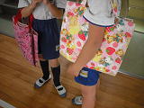 2年生が、マイバックをもって、図書室に本を借りにいってました。1列にならんで移動をしていました。今日は借りるときのルールやマナーも学んでいたようです。