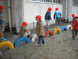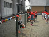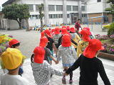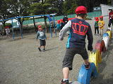 昨日、雨が降り、外で遊べなかったせいか、広場での遊びに大喜び・・・。大はしゃぎで遊んでました。