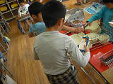 1年生は、給食の片づけもこんなふうに、できるようになりました。牛乳パックも上手にたためます。