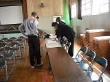 聴力検査がありました。静かに順番を待つ姿は、1年間の積み上げ・・・。シューズもきちんとそろえて検査にのぞんでました。一方、教室では、検査を終わった児童たちが、自分の選んだ係活動の内容を1枚の用紙にまとめていました。