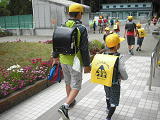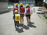 今日も班長さんは、1年生と帰っていきました。温い手に1年生は安心・・・。1年生が班長さんになったら・・・同じように1年生の手をひいて、守りながら帰るのでしょうね。