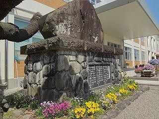 本校は128年の歴史があります。このモニュメントは、正面玄関横にあり、昭和59年、創立百年を記念して建てられたものです。
