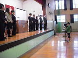 はじめは緊張の表情をみせながらも大きな返事ができました。おじぎも上手にできました。