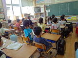 るぴなす支援学校の子ども達と4年生が交流学習を行いました。お互いの自己紹介、じゃんけん列車、手作りのペットボトルボウリング、バランスボールでの転がしドッジボールを楽しみました。その後、支援学校の子ども達が大好きな「風になりたい」を合唱しました。最後に友情の金メダルを手渡し、交流学習は終了しました。互いのことを思いやる温かでやさしいひとときでした。