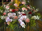 コスモスや菊の花などが展示され,見る人の目を楽しませています。