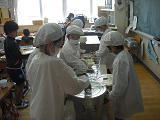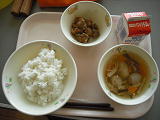 楽しくいただきます!本校は校内で作っています。作りたての温い給食です。