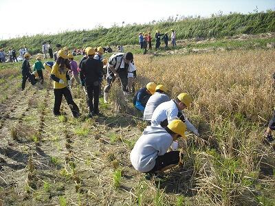 5年生の稲刈り体験の様子です。自分たちで田植えをした稲が、大きく成長したことに喜びを感じながら稲刈り体験を行いました。