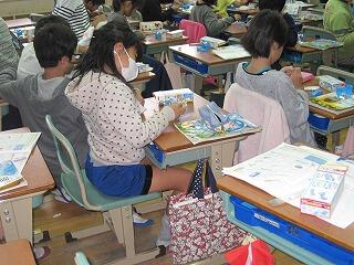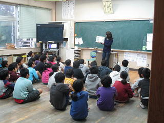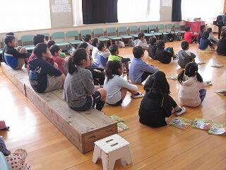 まず、1年生を惹きつけて・・・・読み聞かせを開始しました。毎回、いろいろな工夫がみられるようになりました。