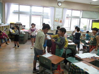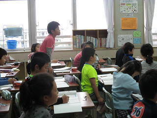 先生が分かりやすく、おもしろく問題を説明されていました。くすくす笑いの子ども達でした。