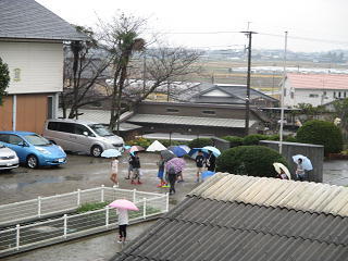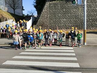 地区集会の後、集団下校を行いました。今の班長さんも残り1カ月で交代です。