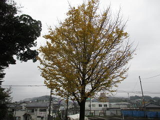 色づきましたよ。子供たちは見上げて嬉しそうです。