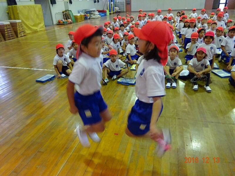 記録を記入しています。最後は、二人なかよくとんでみました。