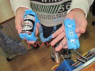 豆電球をつけるスイッチを作りました。友達同士で作り方を教え合っていました。