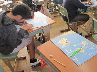 作品を見るよい機会です。早速、5年生が鑑賞に来ていました。