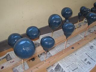 ひょうたんに色つけされていました。何層にも色を重ねて塗ってあり、乾いたら紙やすりで削っていくそうです。どんな模様になるのか楽しみです。