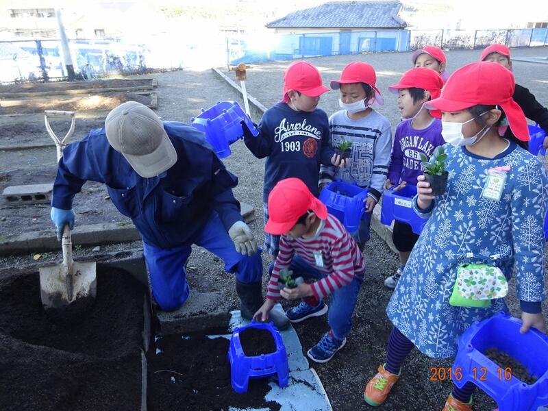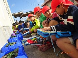 開き始めました。冬休み前はつぼみも見えない苗でしたが、子ども達同様、