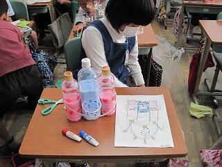 透明な容器を使ってロケットや動物を作りました。みんな、とても楽しそう!