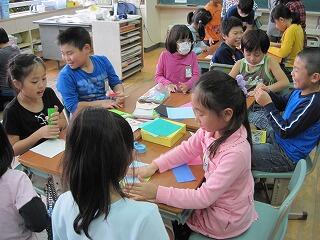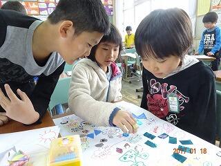 自分の意見を友達に伝え・・・、自分も友達の意見に耳を傾けて、さらに考えを発展させていましたよ。