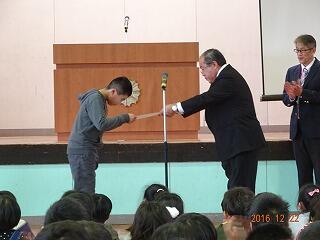 長いと思っていた2学期も今日で終わりです。1年・3年・5年生の代表3名