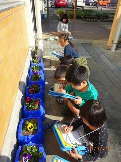 卒業式に向けてお世話をしているパンジーやビオラの花が、かわいい花を