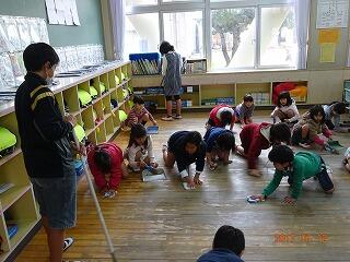 3学期の清掃活動がスタートしました。1年生の教室では6年生がお世話役と