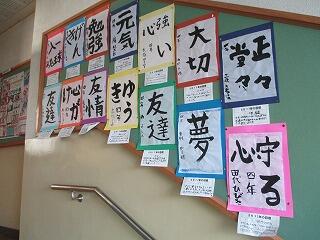 東児湯巡回書写展の作品を校舎1階に掲示しました。各学校の力作