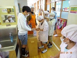 に行っています。給食当番も食缶を受け取る際にスプレー消毒をしています。