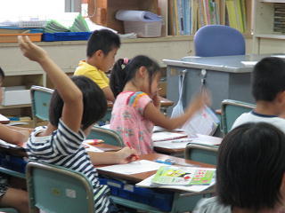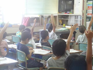 先生の投げかけに懸命に応えていました。活気ある授業が展開されていましたよ。