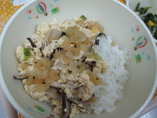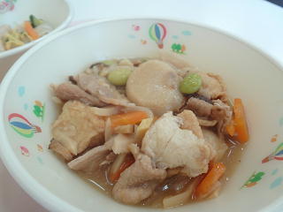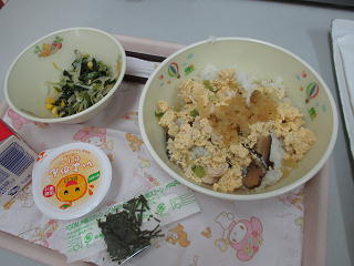 メインは鶏飯・・この時期には嬉しいメニューですね。いよかんゼリーもついて子供たちは嬉しそうにいただきました。